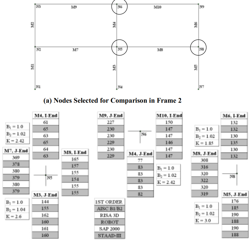dari hasil keluaran beberapa solver menunjukan cukup sama atau identik hasilnya pada momen kolom orde-dua, berbeda halnya dengan hasil keluaran gaya geser. hasil keluaran gaya geser OpenSEES identik dgn SAP2000 sedangkan hasil OOFEM identik dengan MASTAN2. sebagai catatan ada sedikit perbedaan penggunaan yaitu pada software MASTAN2 karena pengaruh kekakuan dan gaya warping diperhitungkan.