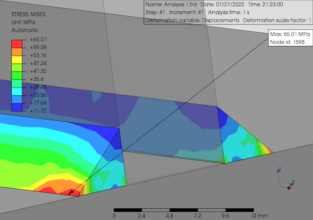 sya pernah membuat tulisan sejenis sebelumnya, saat itu menggunakan metode constraint untuk menghubungkan beberapa komponen. namun setelah dibandingkan dengan model mesh yang menerus dan menyatu menunjukan hasil metode constraint jenis tie sangat sensitif terhadap tingkatan kehalusan mesh antar pertemuannya, bahkan saat dilakukan penukaran (swap) antara permukaan master dan slave menunjukkan hasil yg cukup berbeda jauh.