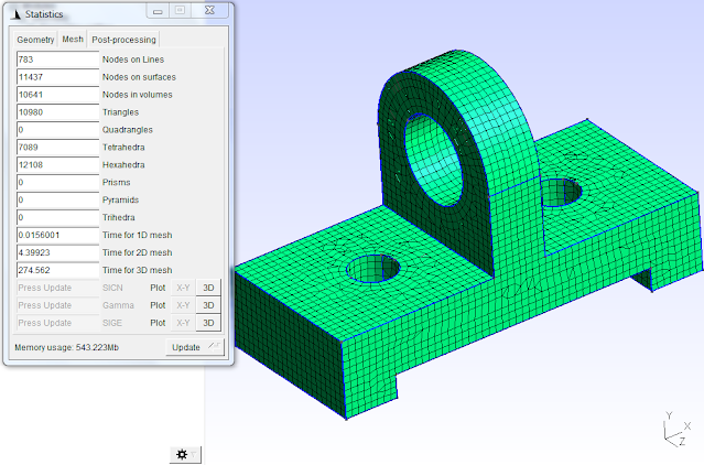 seperti diketahui jenis meshing automatis yg banyak tersedia pada program FE komersil maupun opensource adalah jenis mesh yg menghasilkan element tetrahedral. Kekurangan dari hal tersebut adalah diperlukannya penggunaan jenis quadratic yg konsekuensinya akan mempunyai jumlah nodes jauh lebih banyak. Sedangkan element yg cukup efffektif adalah jenis hexahedral linear incompatible, namun meshing automatis yg tersedia baru sampai pada jenis hex-dominant,, artinya sebagian kecil masih terdapat jenis tetrahedral dan mungkin pyramid sebagai pengisi transisinya.